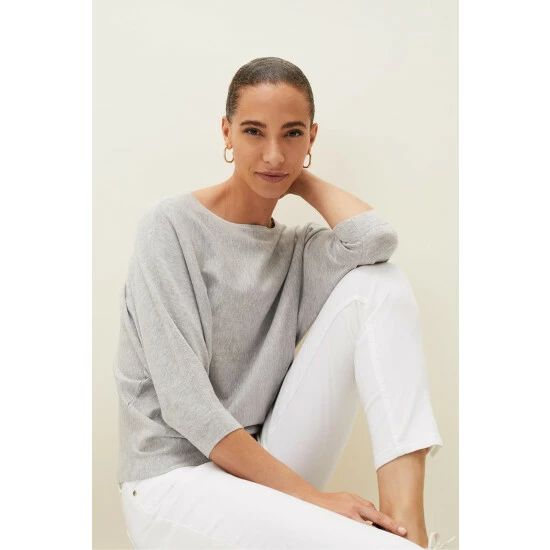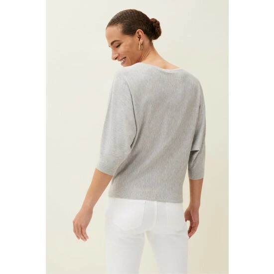 A relaxed-fit fine knit jumper designed with batwing 3/4-length sleeves and a slash neckline. Perfect to wear with jeans.