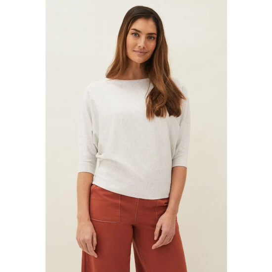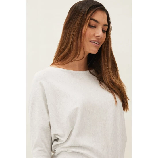 A relaxed fit fine knit jumper designed with batwing 3/4 length sleeves and a slash neckline. Perfect to wear with jeans.