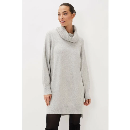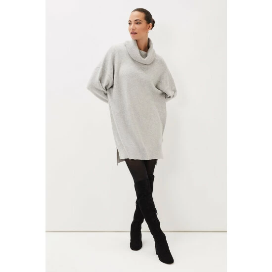 For those colder days when you want a comfortable but stylish outfit, pull on the Palmer jumper dress. Designed with the cool weather in mind, Palmer features a snug ribbed cowl neck, subtle blouson sleeves and a drop hem. Wear with knee high boots for an effortless new season look.