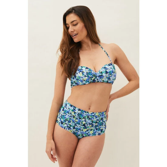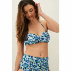 Cut in a classic balconette shape in a beautiful floral print, this bikini top comes with adjustable and detachable straps, soft foam cups and is designed using power mesh for added support.