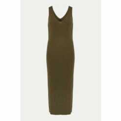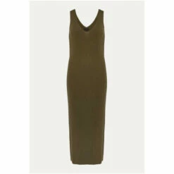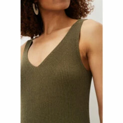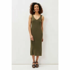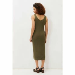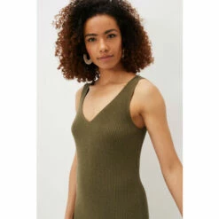 Every woman’s wardrobe needs a stunning ribbed dress. Designed in a versatile green colour, this slim fit ribbed dress has a feminine V-neckline and comes to a midi length. It’s perfect to slip on with sandals and layer on a denim jacket.