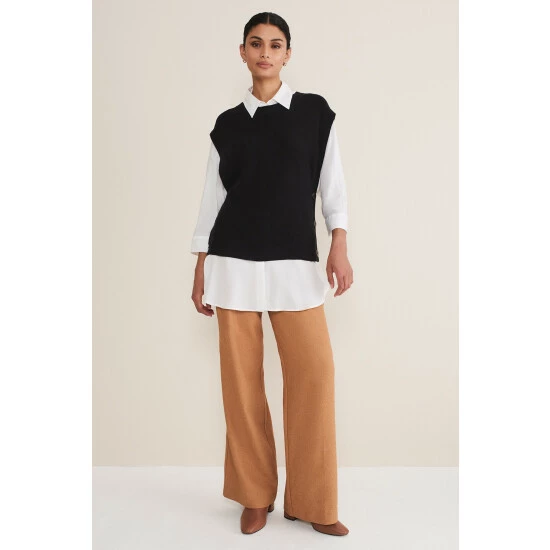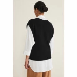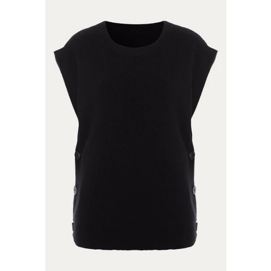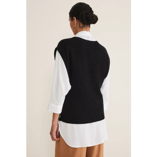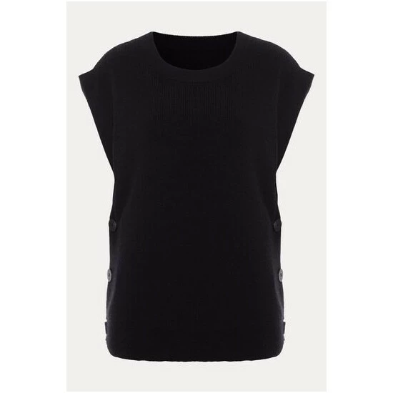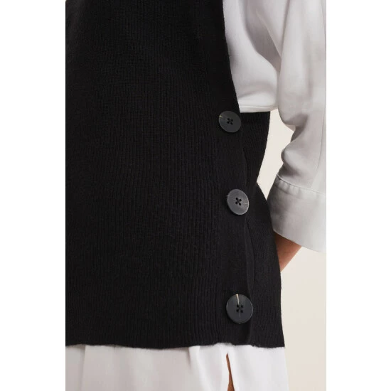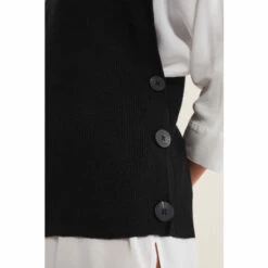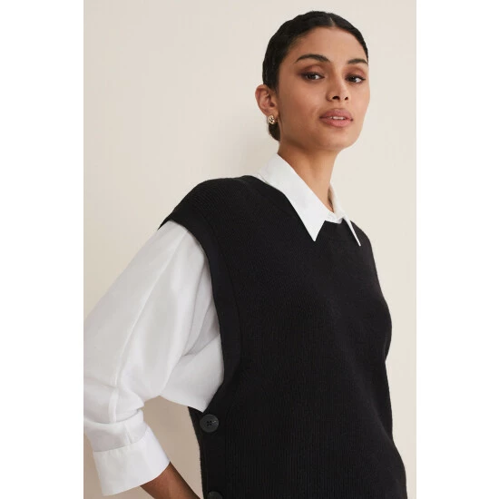 We’ve embraced the must-have trend of this season with our knitted vest. Designed in a versatile black shade with button details this style can be worn on its own or over tailored shirts.