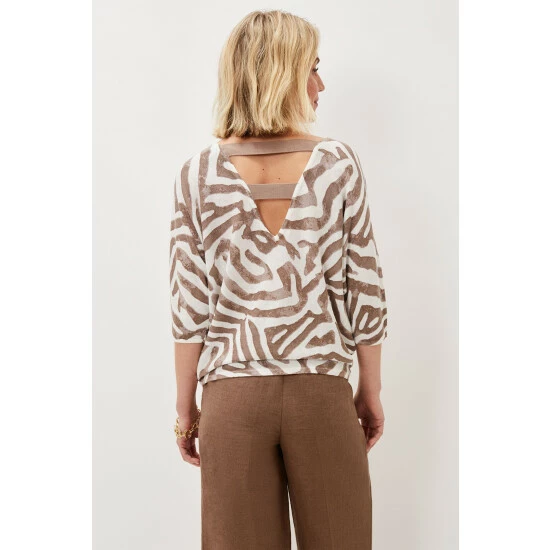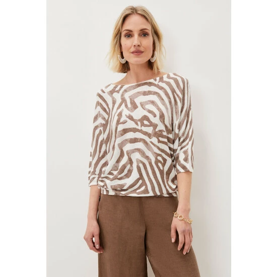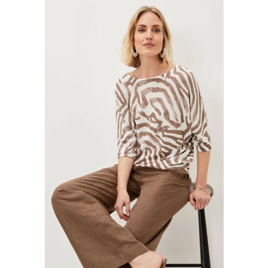 Add this printed top to your everyday wardrobe. Designed in an on-trend zebra print, the linen-rich top features a boat neck, half sleeves and keyhole back and double strap detailing. Wear yours with linen trousers for a casual, everyday look. Part of their Sustainably Sourced Collection. This style has been made from certified renewable wood sources. LENZING ECOVERO viscose uses a responsible production process, generating up to 50% lower emissions and water impact than generic viscose.