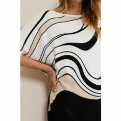 Add this top to your everyday wardrobe. Our Macie top features an abstract design, a round neck and batwing sleeves. We wear ours with jeans for a casual day-to-day look. This style is responsibly sourced. This style has been made from certified renewable wood sources. LENZING™ ECOVERO™ viscose uses a responsible production process, generating up to 50% lower emissions and water impact than generic viscose. LENZING™ ECOVERO™ are trademarks of Lenzing AG.