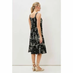 Your new spring or summer go to. Designed in an abstract print, this loose fit dress features a square neckline and tiered skirt. Wear with sandals for an everyday look or dress up with wedges for your next garden party. Part of their sustainably sourced collection. This style has been made from certified renewable wood sources. LENZING™ ECOVERO™ viscose uses a responsible production process, generating up to 50% lower emissions and water impact than generic viscose. LENZING™ ECOVERO™ are trademarks of Lenzing AG.