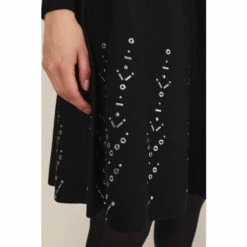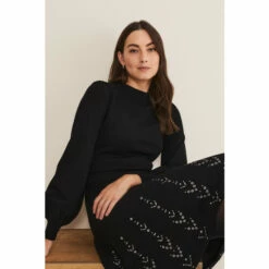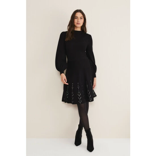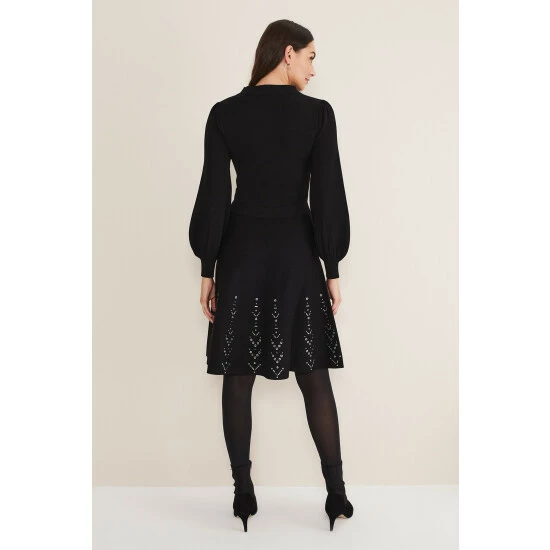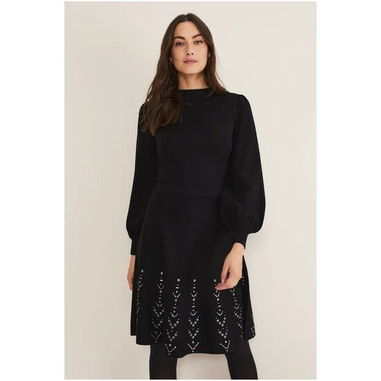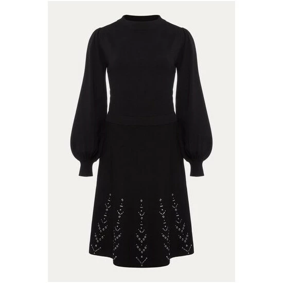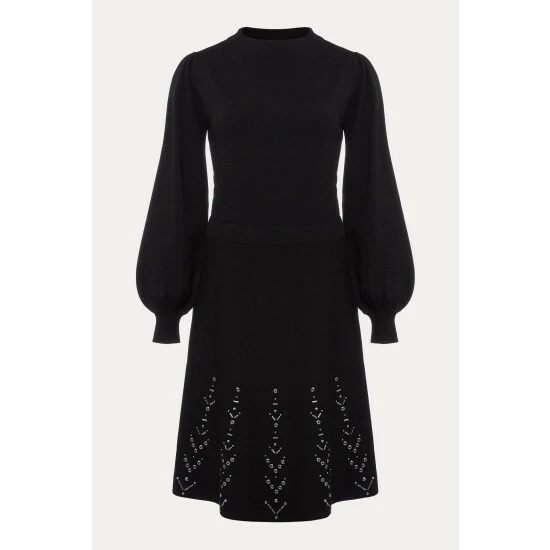 Meet your new dress up, dress down style. Designed in versatile black, our Marley dress features on-trend balloon sleeves and falls to a flattering fit and flare silhouette. The pleated skirt is designed with studded detailing for a striking finish. Style with heels or boots.