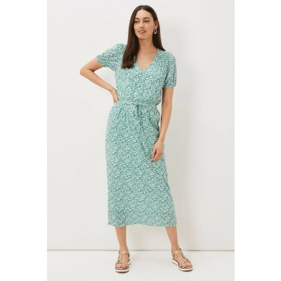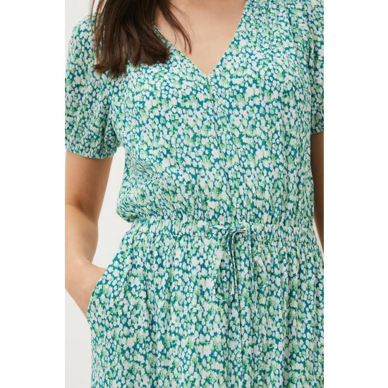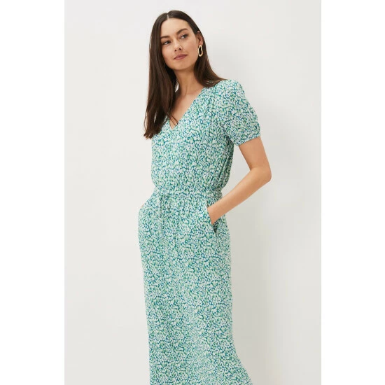 This will make a lovely addition to your daywear wardrobe. Designed in a pretty floral ditsy print, this style features a loose silhouette with an elasticated waist to define your waist, as well as a V-neckline and short, elasticated sleeves.