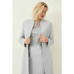 This long occasion jacket is the perfect finish to event outfits. Designed with an open front, swan neckline and flattering seaming, we’ve styled the Myra Coat here over our Mariposa Lace Dress. Wear with our colour coordinated accessories to complete your outfit.