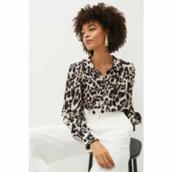Take a walk on the wild side with our Chelsie blouse. Designed in an easy wrap silhouette, this style showcases a striking leopard print that is brand new for us, and always on-trend. This style is finished with feminine frill detailing on the cuffs. Model wears UK size 10 and is 5 10/177cm