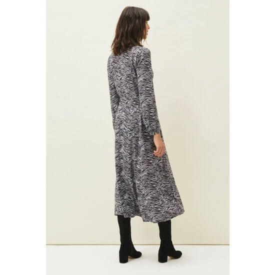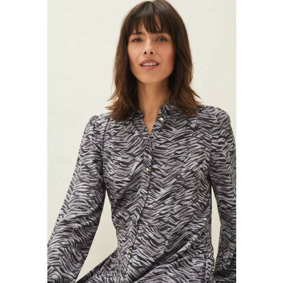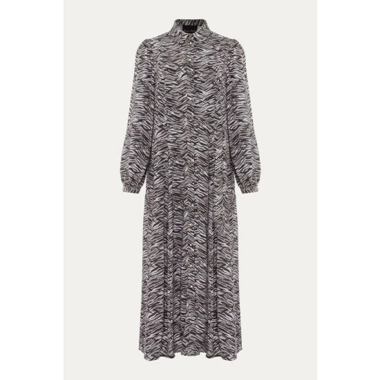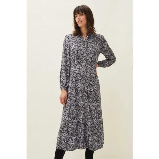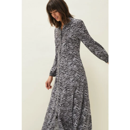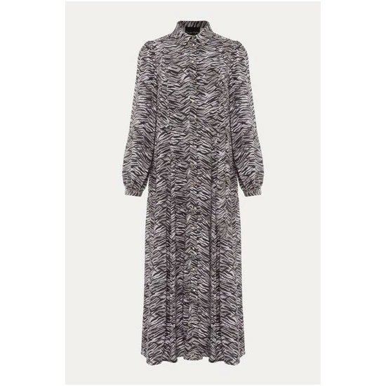 Phase Eight’s Amari shirt dress falls to a versatile maxi length and features a modern zebra print throughout. Framed by softly blouson sleeves and a classic collar.