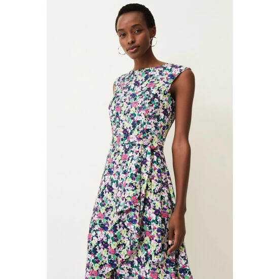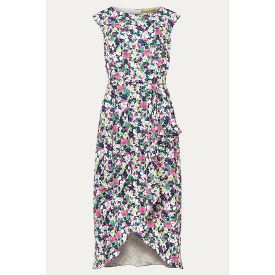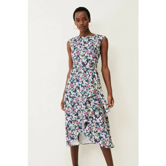 Florals, frill detailing and an eclipse hem: this occasion dress has it all. An effortless take on event dressing that will see you through every date in your diary.