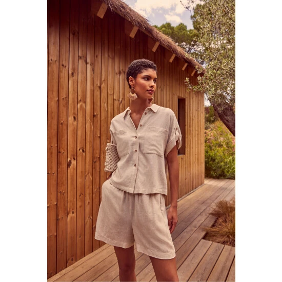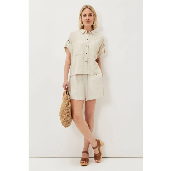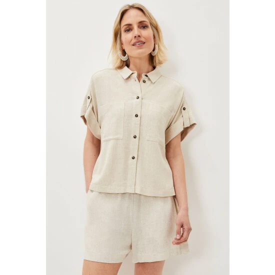 The perfect style to add to your spring/summer wardrobe. Designed in a neutral ivory shade, the Mona blouse features short, turned up sleeves and utility-inspired patch pockets and working buttons.