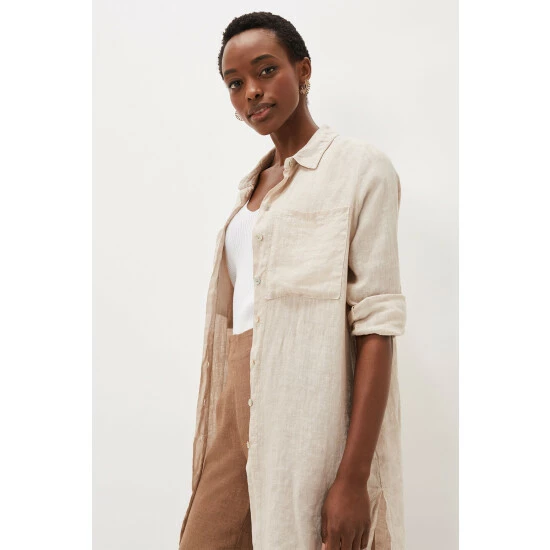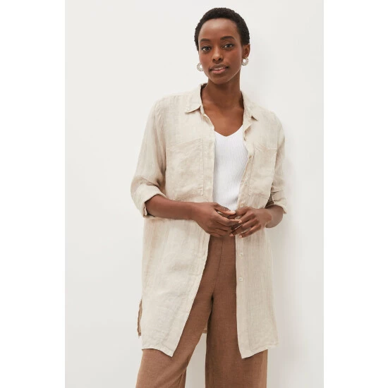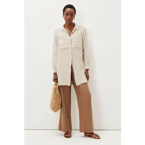 Cut in a relaxed fit from comfortable 100% linen, Phase Eight’s long-line Cynthia tunic is designed with a classic collar, patch pockets and full length sleeves. This neutral colour will go with all of your coloured separates.