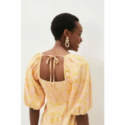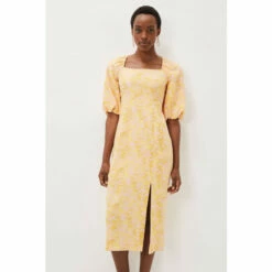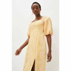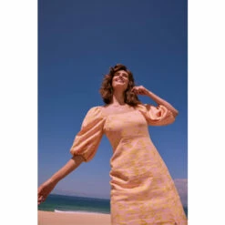 A contemporary style that you’ll reach for time and time again. Designed in a linen-rich blend, this style features statement gold metallic threading to form an on-trend zebra print. Phase Eight’s dress features an on-trend square neckline, puff short sleeves, tie back detailing as well as a short slit along the front. Just slip on sandals and you’re ready to go.