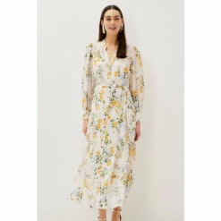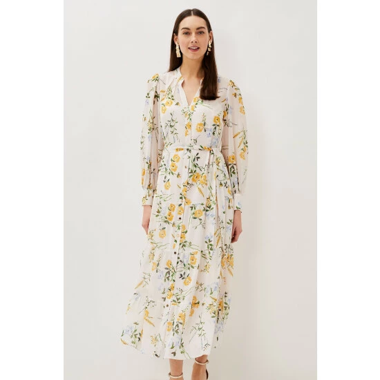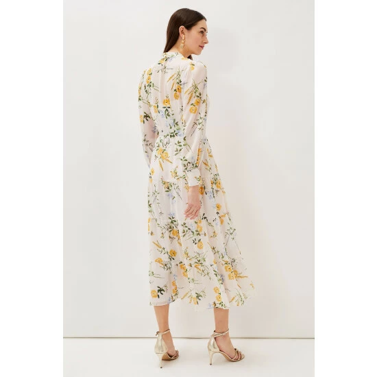 Printed throughout with a feminine floral print, their Lucie Shirt Dress is guaranteed to turn heads at your next events. Designed with long semi-sheer sleeves and soft pleating through the skirt, this midaxi is a timeless style you’ll wear again and again.