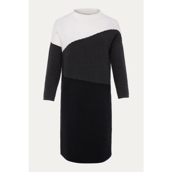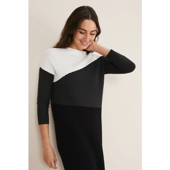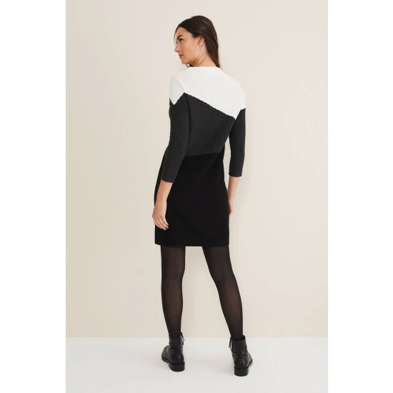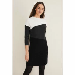An easy, effortless dress to add to your winter wardrobe. Designed with a statement colourblock and ribbed texture, our Mali slim fit dress features 3/4 length sleeves. We wear ours with tights and boots for a casual everyday look. This style is responsibly sourced. This style has been made from certified renewable wood sources. LENZING™ ECOVERO™ viscose uses a responsible production process, generating up to 50% lower emissions and water impact than generic viscose. LENZING™ ECOVERO™ are trademarks of Lenzing AG.