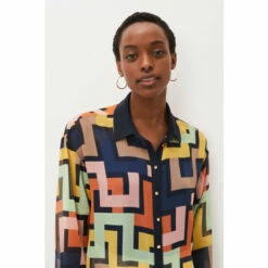 Sure to add interest to your work-to-weekend wardrobe, the Milano tunic features an on-trend bold geometric print. Designed with a contrasting black collar, cuff and placket, the tunic features working buttons that makes this style so versatile. Wear it tucked in, or loose over any of your neutral trousers or jeans. Part of their Sustainably Sourced Collection. This style has been made from recycled polyester, giving materials that would have ended up in landfill a new lease of life.