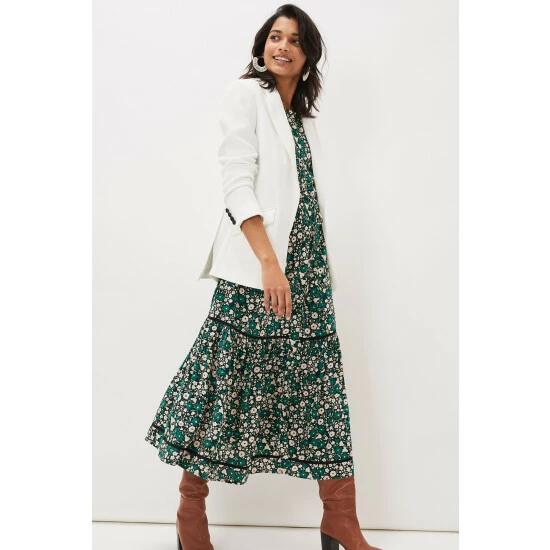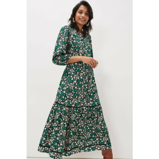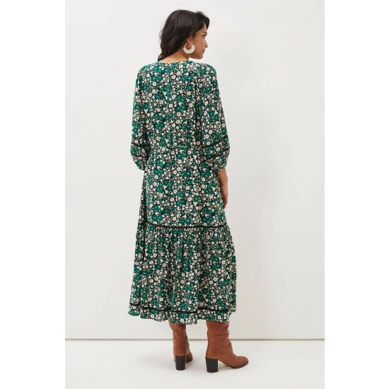 A beautiful day dress featuring a striking floral pattern throughout. Designed with on-trend bell sleeves and feminine border trims, this midaxi style looks great paired with our Jordan Knee Boots.