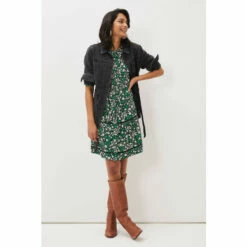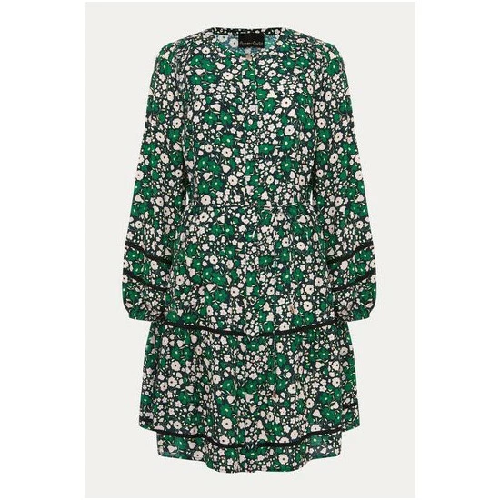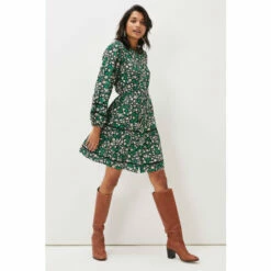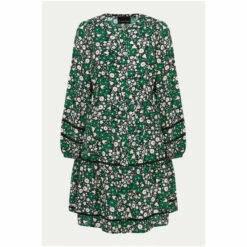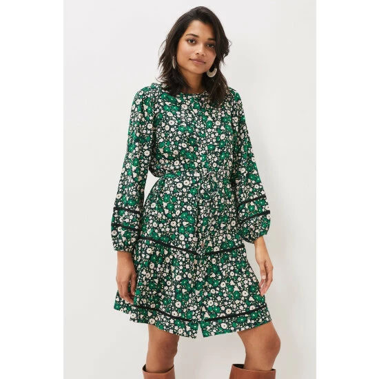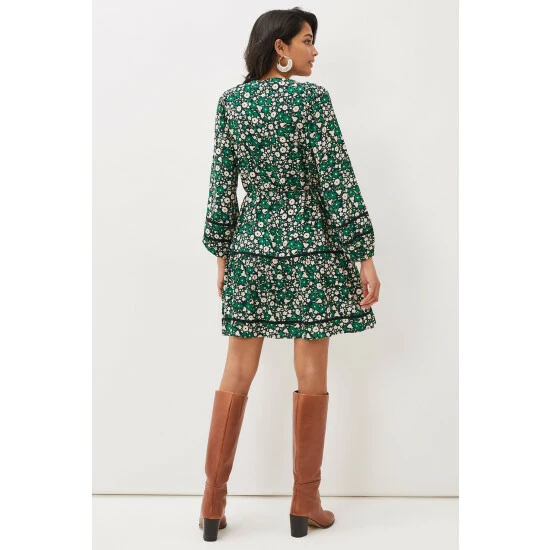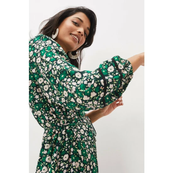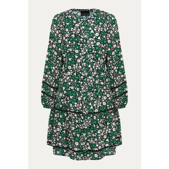 A beautiful day dress featuring a striking floral pattern throughout. Designed with on-trend bell sleeves and feminine border trims.