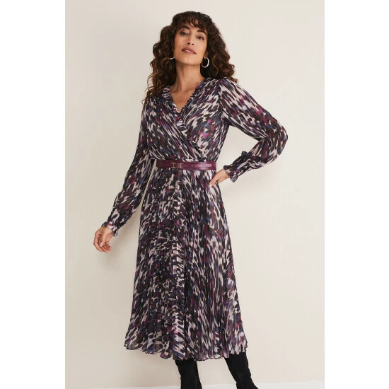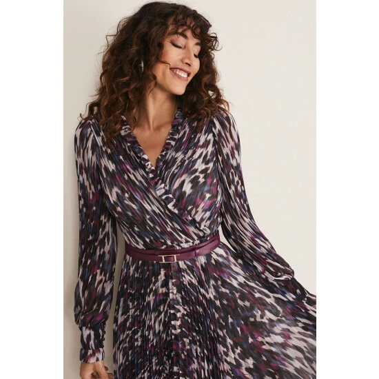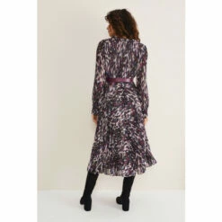A stunning dress to add to your wardrobe. Designed in a striking purple animal print, this dress will see you from brunch to bar instantly just add leather boots and accessories.