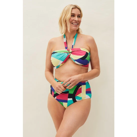 Featuring a colourful abstract print throughout, this halterneck bikini top is super-supportive, designed in a flattering cross-over style, and finished with two bow tie fastenings. All of Phase Eight’s swimwear is designed in a flattering power mesh fabric, with supportive bust cups.