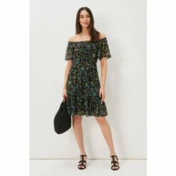 Our Zaylah mesh dress is the perfect daytime style. Designed in a feminine floral print, our dress features a bardot neckline and a skater skirt that falls to the knee. Both airy and breathable, this dress pairs perfectly with simple black heels. Part of our Sustainably Sourced Collection. This style has been made from recycled polyester, giving materials that would have ended up in landfill a new lease of life.