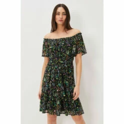 Our Zaylah mesh dress is the perfect daytime style. Designed in a feminine floral print, our dress features a bardot neckline and a skater skirt that falls to the knee. Both airy and breathable, this dress pairs perfectly with simple black heels. Part of our Sustainably Sourced Collection. This style has been made from recycled polyester, giving materials that would have ended up in landfill a new lease of life.
