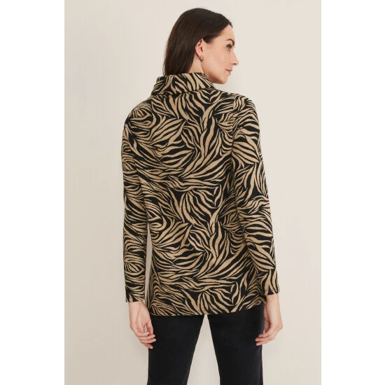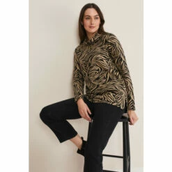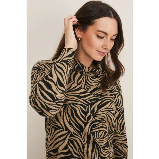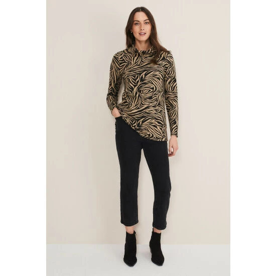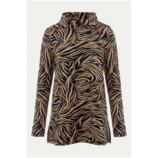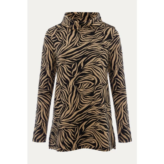 A statement top for your everyday wardrobe. Designed in black and camel colours, our top features long sleeves and a roll neck. We wear ours with black jeans and boots for a casual weekend look.