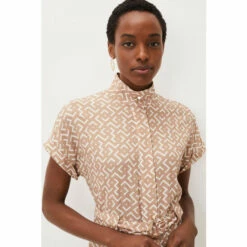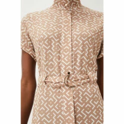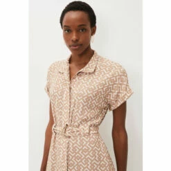 Our Tilda Geo Dress is the perfect desk-to-dinner dress this season. It features a stylish, versatile collar that can be worn done or undone, and features a self-tie belt to cinch in your waist. We pair ours with brown wedges in keeping with the stylish neutral colour palette. Part of our Sustainably Sourced Collection. This style has been made from certified renewable wood sources. LENZING™ ™ ECOVERO™ viscose uses a responsible production process, generating up to 50% lower emissions and water impact than generic viscose. LENZING™; and ECOVERO™ are trademarks of Lenzing™ .