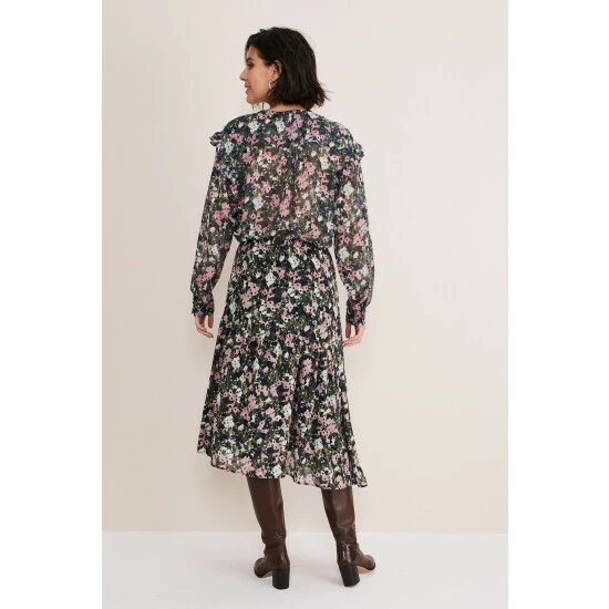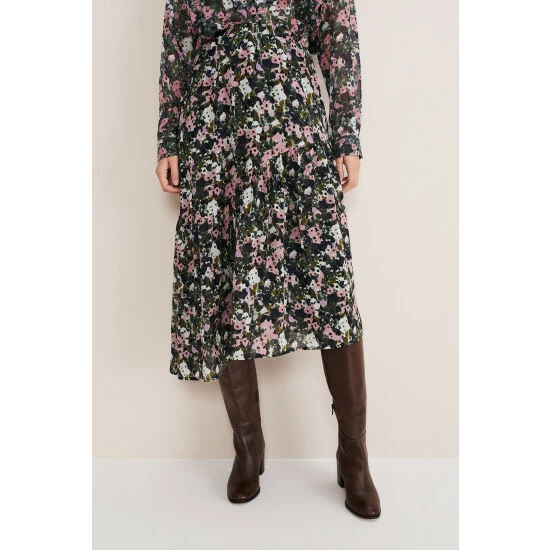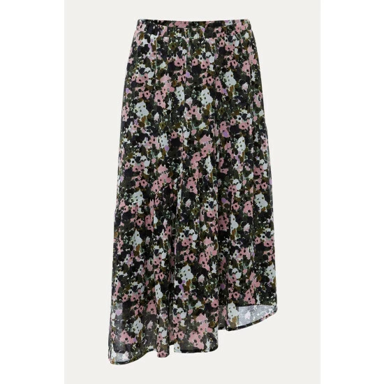 Your new favourite floral skirt. Designed with a gorgeous all-over floral pattern in shades of green with pops of pale pink and white, our skirt features a flattering loose, flowing silhouette. This style is responsibly sourced. This style has been made from recycled polyester, giving materials that would have ended up in landfill a new lease of life.