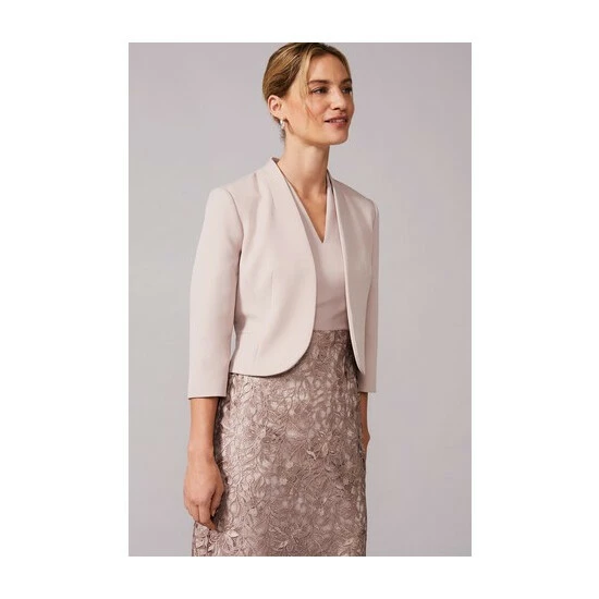 Add the finishing touch to occasionwear with this fitted open front jacket – we love the contemporary peplum hem at the back.