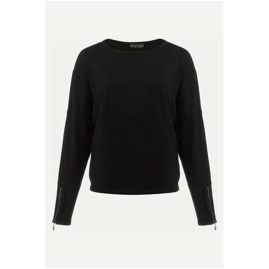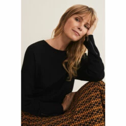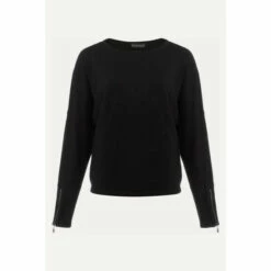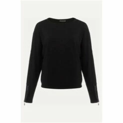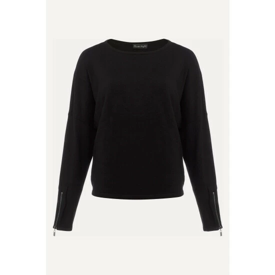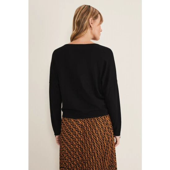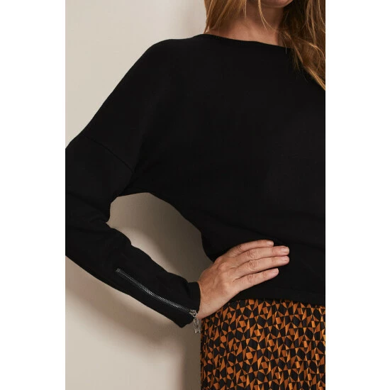 Our versatile black fine knit jumper will be one of your go-to knits for the season. Finished with exposed seams detailing, a slash neckline and long sleeves with zip detailing at the cuff. Style this with any of your new season separates.