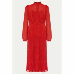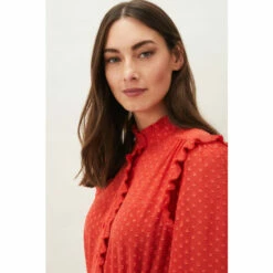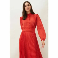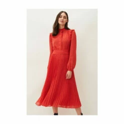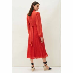 Designed in a striking orange shade, this Annie dress is all about the details. With an on-trend dobby texture throughout, this style features frill detailing through the bodice, pleating through the skirt and is framed by statement blouson sleeves. A matching waist tie finishes the look.