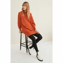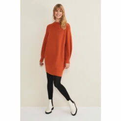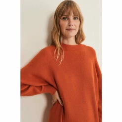 One of our much-loved styles in a brand new shade. Our Eliana jumper dress is designed in a warm knitted fabric with soft ribbed accents to a relaxed silhouette, it features balloon sleeves and a classic high neck. Wear yours with tights and knee high boots for an effortless autumn/winter look.