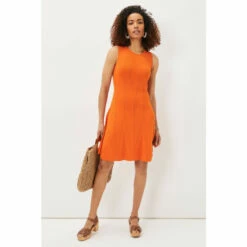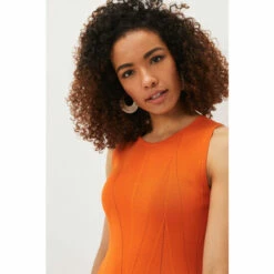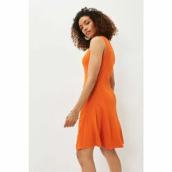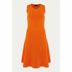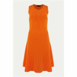 A new, contemporary style for them that is sure to brighten up your everyday wardrobe. Their sleeveless dress features a sunny orange shade, slim fit silhouette with an A-line skirt and has stitch detailing down the dress. Just slip on your sandals for a bright, warm weather look.