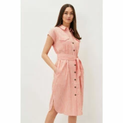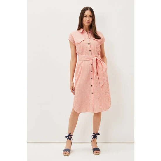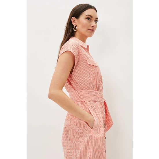 The perfect style to add to your spring/summer wardrobe. Designed in tangerine and white, Phase Eight’s cotton-rich dress features contrast tortoiseshell working buttons, handy pockets and a self-tie waist. Phase Eight wear theirs with wedges for a warm weather look.