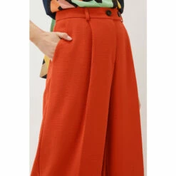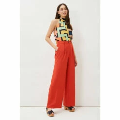 Their Opal wide leg trousers are a must-have this season. Designed in a rich burnt orange shade, their trousers are cut to with a flattering wide leg and feature a wide waistband and decorative front pleats. They wear theirs with a printed halterneck and clogs, but they would also look equally as stylish with a white T-shirt and trainers, making them an effortlessly diverse piece.