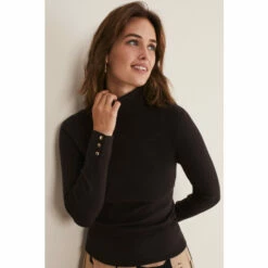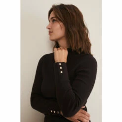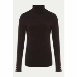 The perfect knit to add to your everyday wardrobe. Designed in a deep chocolate brown shade that’s endlessly versatile, our Ottilie knit features gold hardware detailing at the cuff and the back of the roll neck. Style with any of your separates. This style is responsibly sourced. This style has been made from certified renewable wood sources. LENZING™ ECOVERO™ viscose uses a responsible production process, generating up to 50% lower emissions and water impact than generic viscose. LENZING™ ECOVERO™ are trademarks of Lenzing AG.