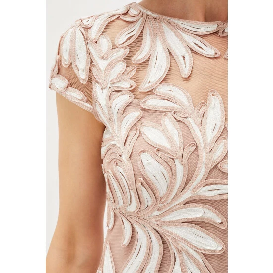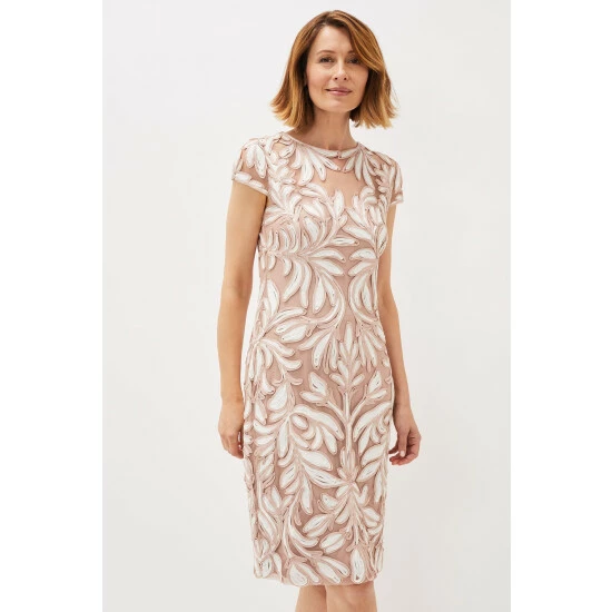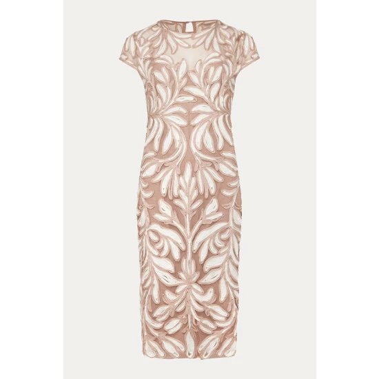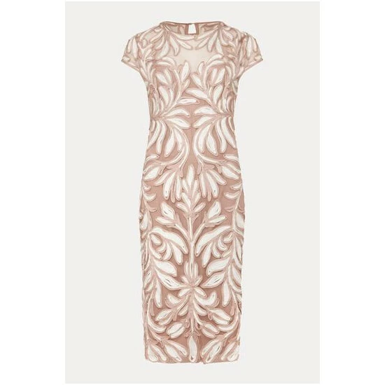 The contrast tapework lace design on this fitted dress makes it an occasion style that is both elegant and eye-catching. A timeless dress you can turn to for special events year after year.