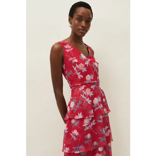 Full of romance, this sleeveless Antonella Dress is printed with beautiful florals and is designed with a feminine tiered skirt, creating beautiful volume. This style is an ideal choice for future weddings or garden parties.