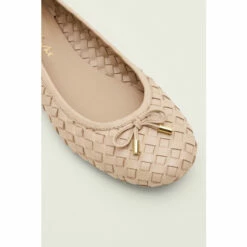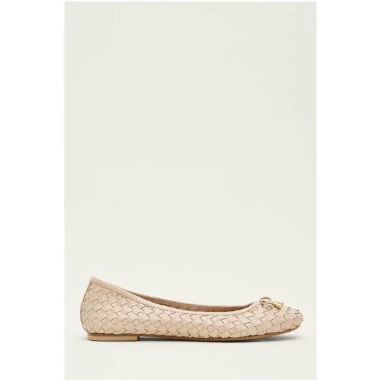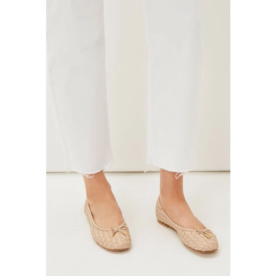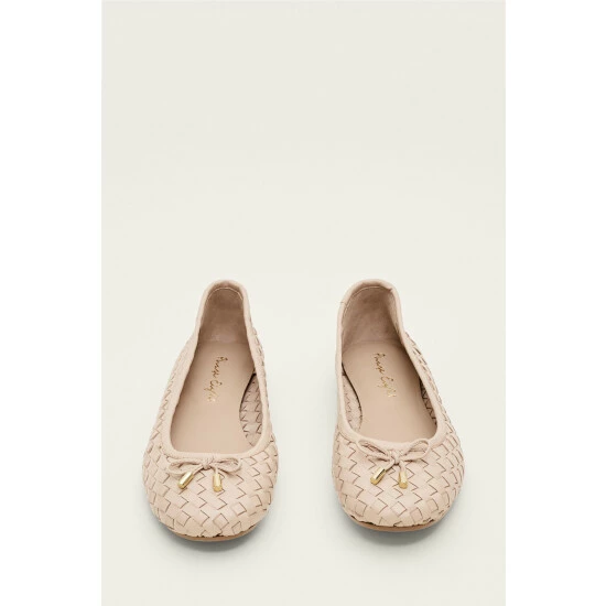 A contemporary take on a ballet pump. Crafted from 100% leather, this blush woven design features bow detailing at the rounded toe. Wear with everything from jeans to skirts to dresses.