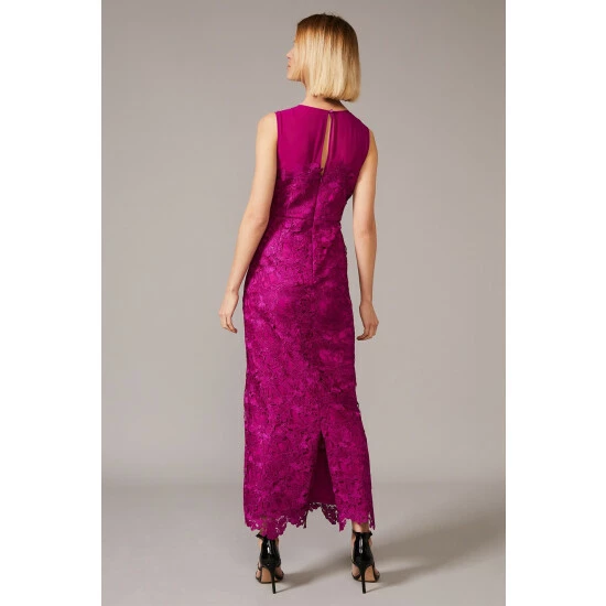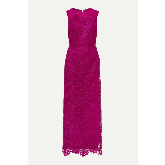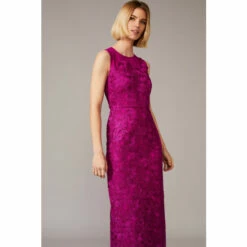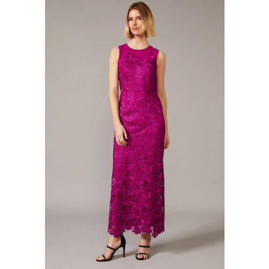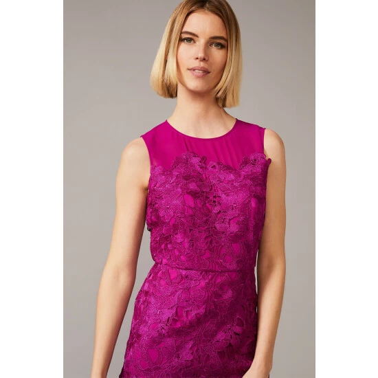 From Collection 8, Phase Eight’s stunning range of premium evening dresses. Designed with an open structured floral lace overlay, this full length fitted dress was made for your next black tie event. Created in a rich fuchsia shade that is sure to turn heads, the Bessie style is framed with a sheer yoke bodice and finished with a keyhole back and split skirt for ease of movement.