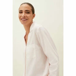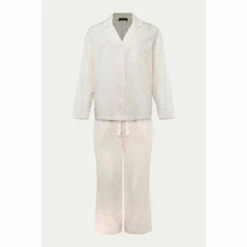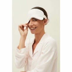 Relax in style with their 100% cotton pyjama set that is both light and breathable. Designed with a classic stripe print, this co-ord features a button through shirt and wide leg trousers with an adjustable waist tie. All of their pyjama styles come with a matching eye-mask and scrunchie in a self-tie bag.