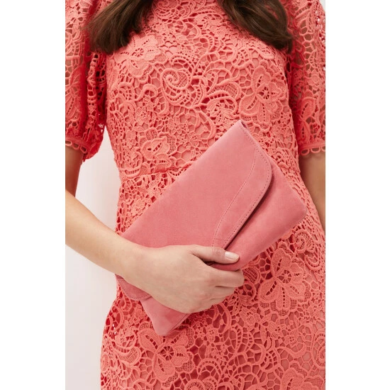 It’s the small details that count, and this suede envelope evening clutch bag is no exception.