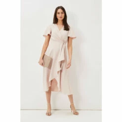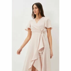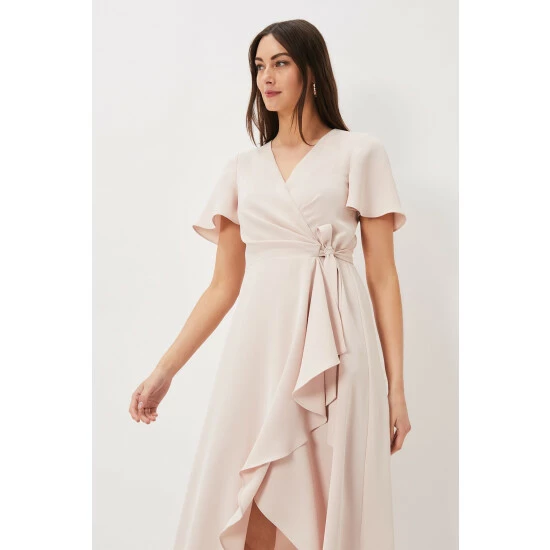 The perfect occasion dress, our Julissa wrap dress is a must-have this season. Designed in a beautiful pale pink shade, the dress features a tie waist and frilled edging, creating an effortless layered silhouette. For the ultimate wedding guest look, pair with a fascinator and matching accessories.