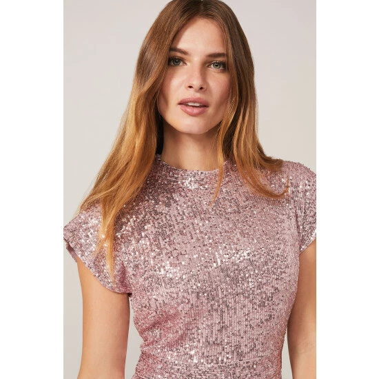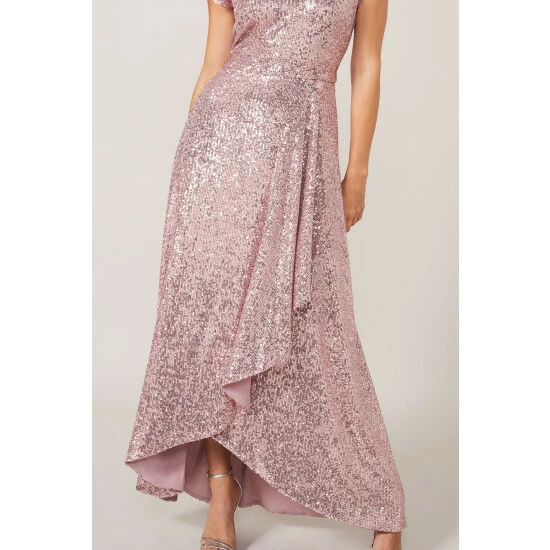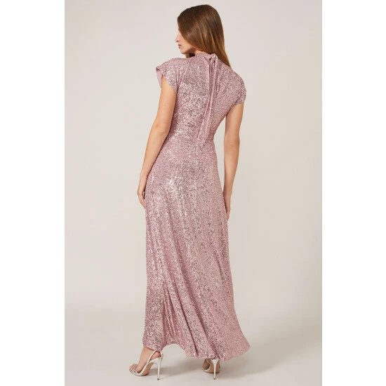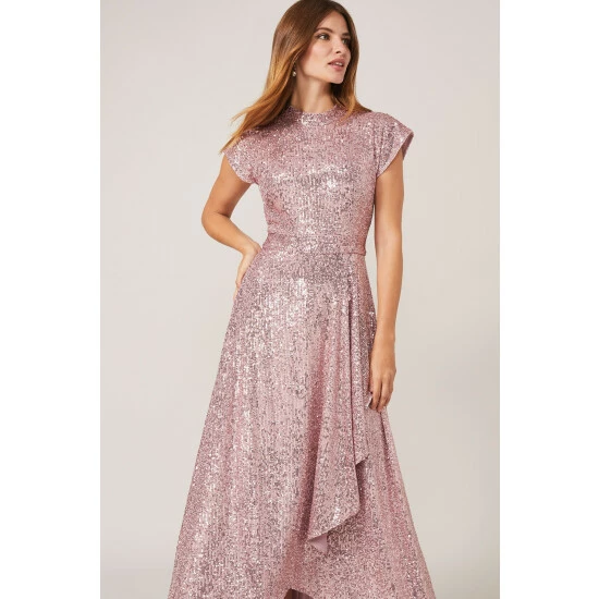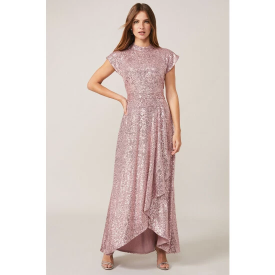 From Collection 8, Phase Eight’s stunning range of premium evening dresses. Sequinned throughout for head-to-toe sparkle, this statement maxi dress is the perfect piece to celebrate in. Designed with an eclipse hem for beautiful movement, this style is framed by a high neckline, cap sleeves and bow detail at the back.