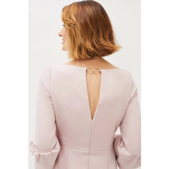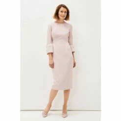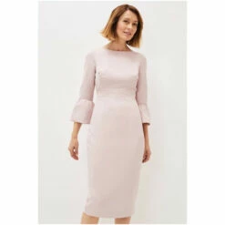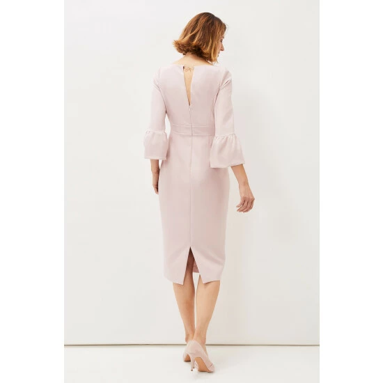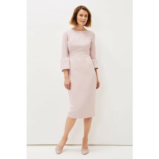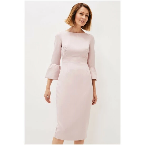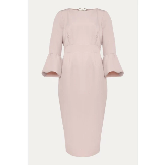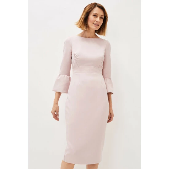 Designed in a soft pink shade, our Keyla Dress is the perfect style for the events you have planned ahead. We love this style s classic boat neck and statement fluted sleeves.