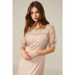 From Collection 8, Phase Eight’s stunning range of premium evening dresses. The Leonie dress is a vintage-inspired style in a soft shade of powder pink. Designed with intricate hand-placed beadwork and embellishment throughout and a full-length skirt created from layers of heavenly tulle, this gown truly showcases Phase Eight’s expertise in craftsmanship. Wear to all your biggest events with minimal accessorises to let this dress take centrestage.