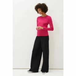 Meet your new favourite jumper, their Molla style is designed in a classic crew neck cut and vibrant pink shade. They’ve chosen to wear ours here with the faux leather culottes, but with this knitted separate, the styling options are endless.