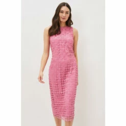 Inspired by the popular 60s shift silhouette and designed in lace throughout, Phase Eight’s Novah Dress is a truly stunning style. Cut to a midi length, this sleeveless style showcases an intricate lace overlay that demands a closer look. A fabric T-bar at the back finishes this occasion style that is perfect for your upcoming RSVPs.